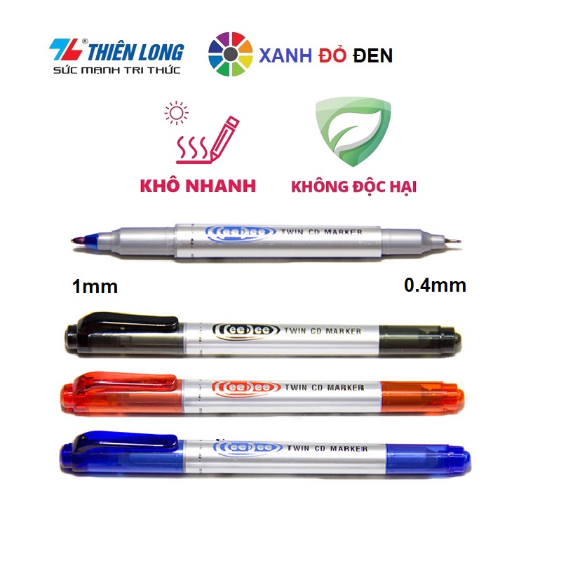 Mực đậm, nhanh khô, ghi tốt trên nhiều loại bề mặt. Mực không độc hại đạt tiêu chuẩn Châu Âu EN71/3, EN71/9, và Mỹ ASTM D-4236.